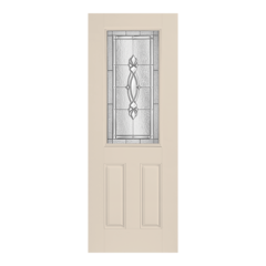Belleville Smooth Door 2 Panel Twin Lite with Panama Glass with Platinum Caming