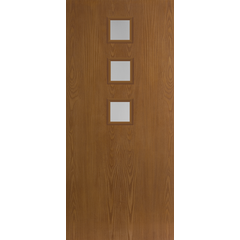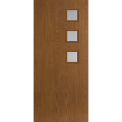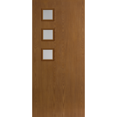 Belleville Oak Textured 3 Square Lite Center Door with Clear Glass