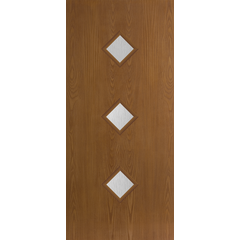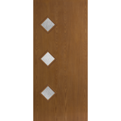 Belleville Oak Textured 3 Diamond Lite Center Door with Quill Glass
