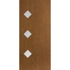 Belleville Oak Textured 3 Diamond Lite Center Door with Pearl Glass