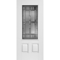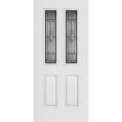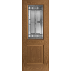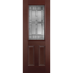 Belleville Series Woodgrain Textured 2 Panel Door Half Lite with Artisan Glass