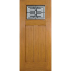Heritage Series Fir Textured Fiberglass 2 Panel Craftsman Lite with Artisan Glass with Antique Black Caming