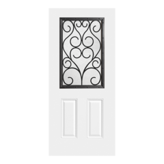 Belleville Smooth Door 2 Panel Twin Lite with Niagara Glass with Antique Black Caming