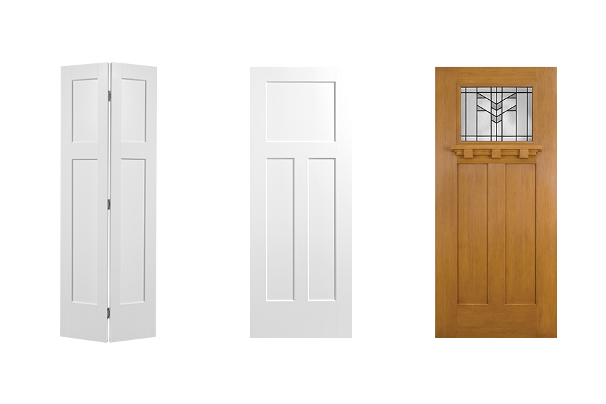 Doors in this style tend to lean towards having glass in the upper third with a thick or ornate piece of trim immediately below it. Although the glass inserts are typically rectangular, the number of panes differs based on preference.