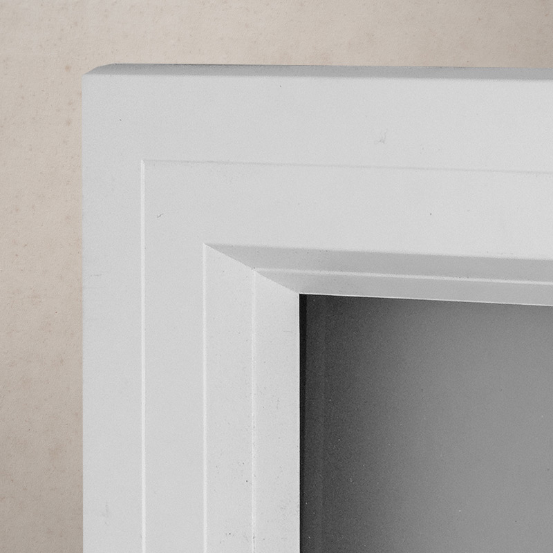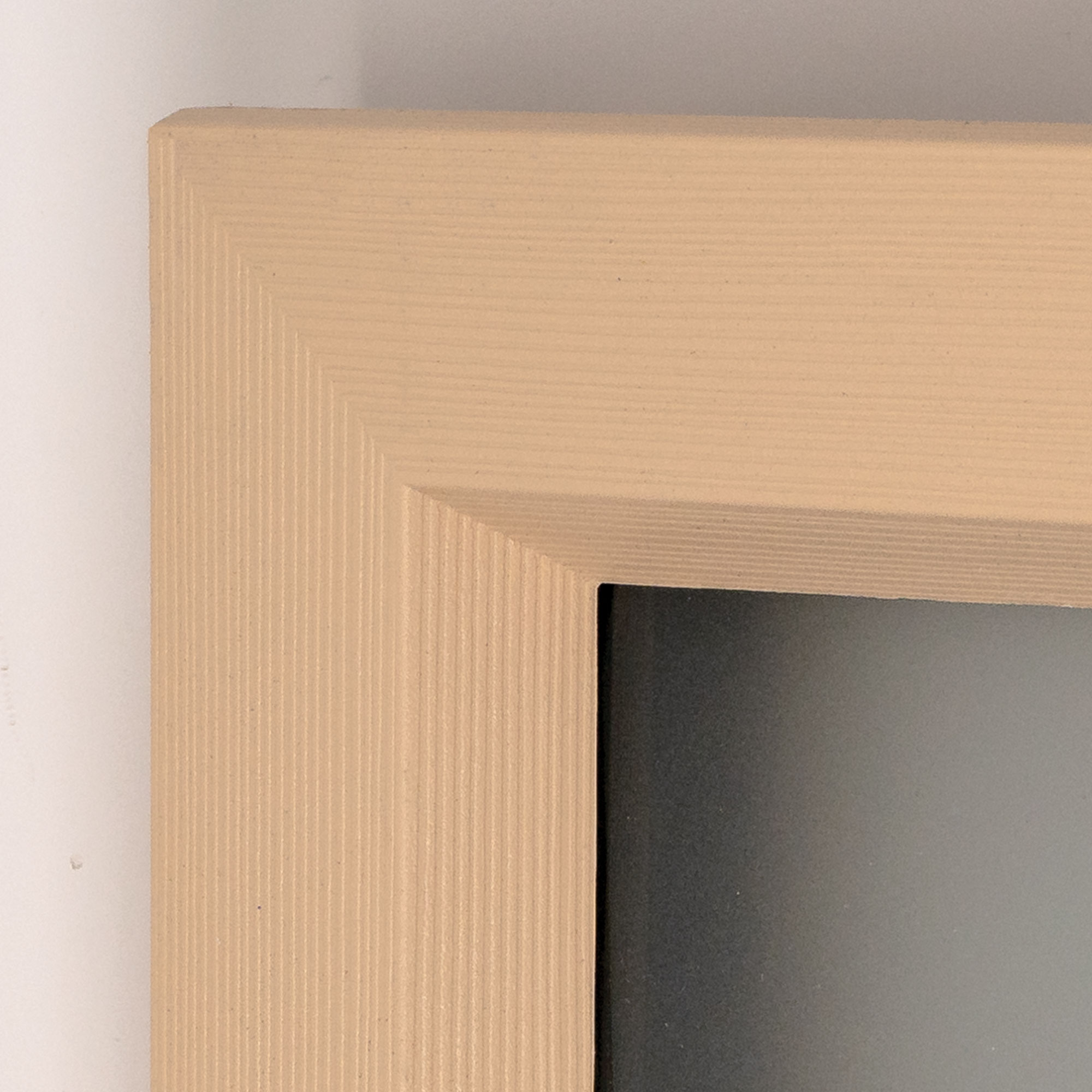 The tan frame has a straight- grain textured for painting or staining.