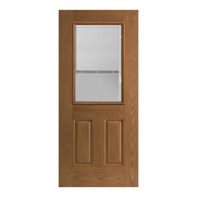 Categories: Doors | Exterior | Mini Blind | Doors with Glass | Belleville | Clear glass | White Miniblind | Oak | Half-Lite | 2-Panel
