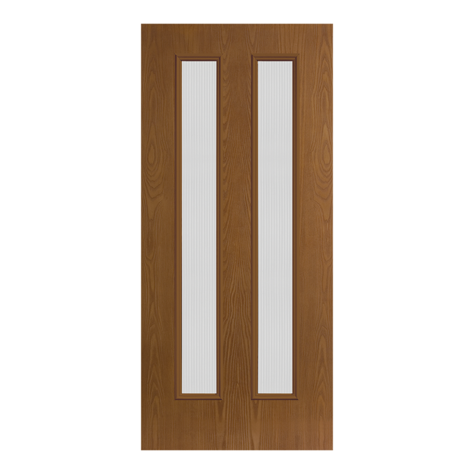 Belleville Oak Textured 2 Vertical Lite Center (8 in Glass) Door with Pearl Glass