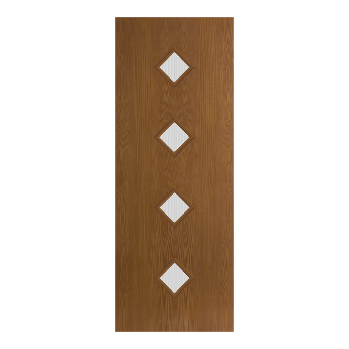 Belleville Oak Textured 4 Diamond Lite Center Door with Quill Glass