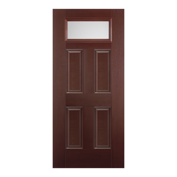 Belleville Mahogany Textured 4 Panel Door Rectangle Lite with Pearl Glass