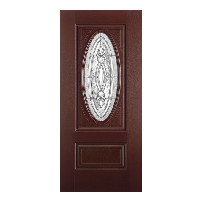 Belleville Mahogany Textured 2 Panel Hollister Door 3/4 Oval with Panama Glass