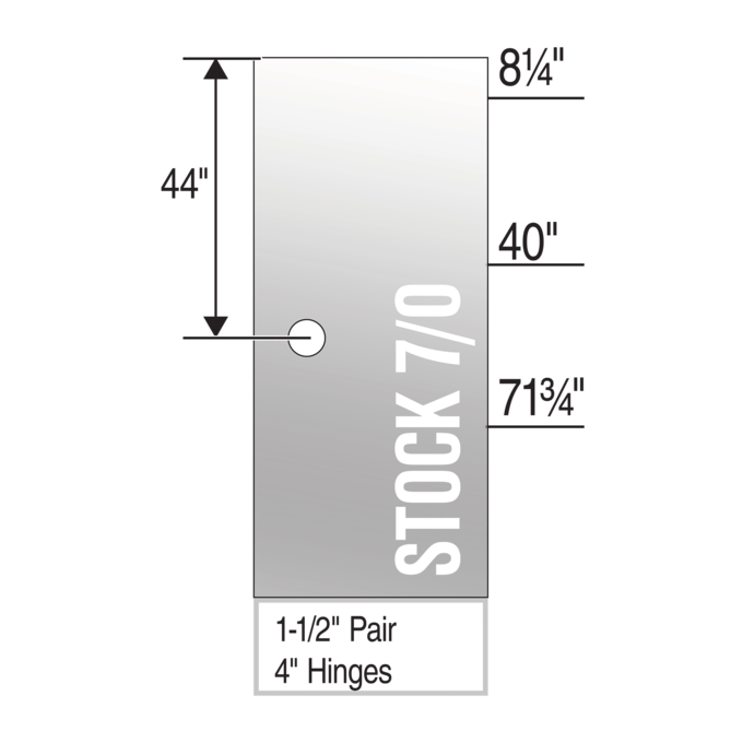 - Hinge Locations (Top of Door to Top of Hinge): 8-¼", 40", 71-¾"