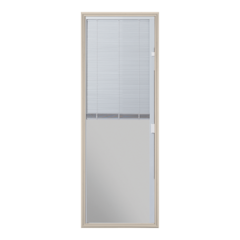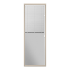 Flush Glazed with blocking for panic hardware and closer. FJ primed exterior frame. White or bronze weatherstrip, white or bronze corner pad. Frame reinforcement plate.